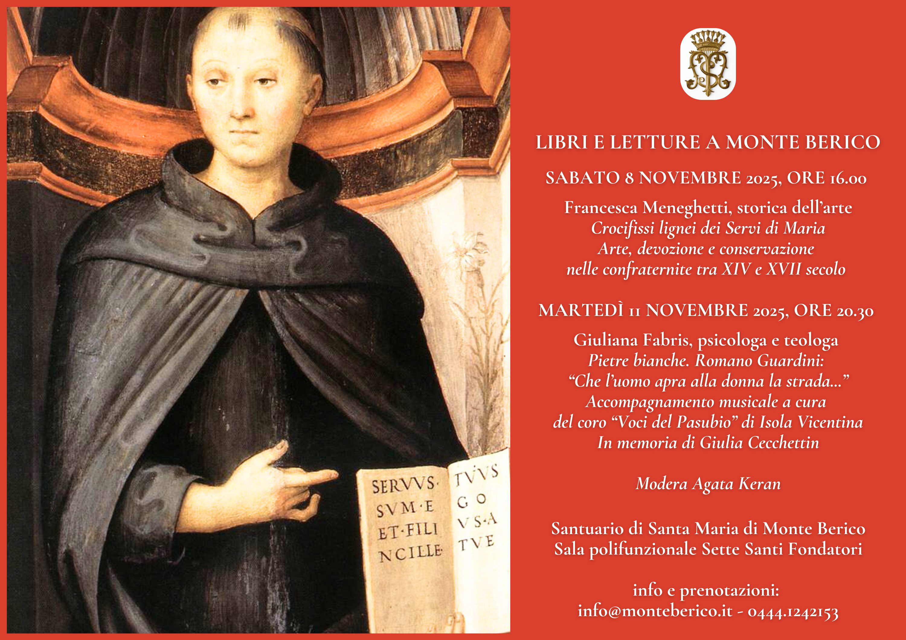 Ci fa piacere segnalare la rassegna “Libri e letture a Monte Berico”, con la presentazione dei volumi di Francesca Meneghetti, storica dell’arte, e di Giuliana Fabris, psicologa e teologa.